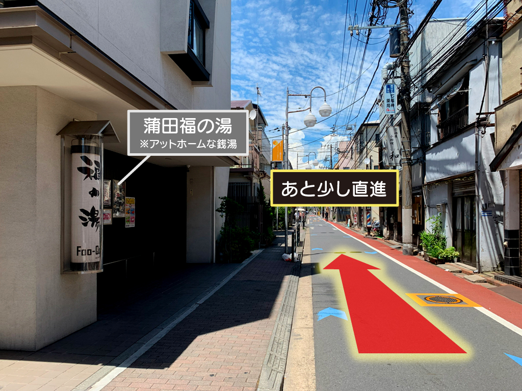 左手に銭湯の「蒲田福の湯」が見えたらあと少しです。